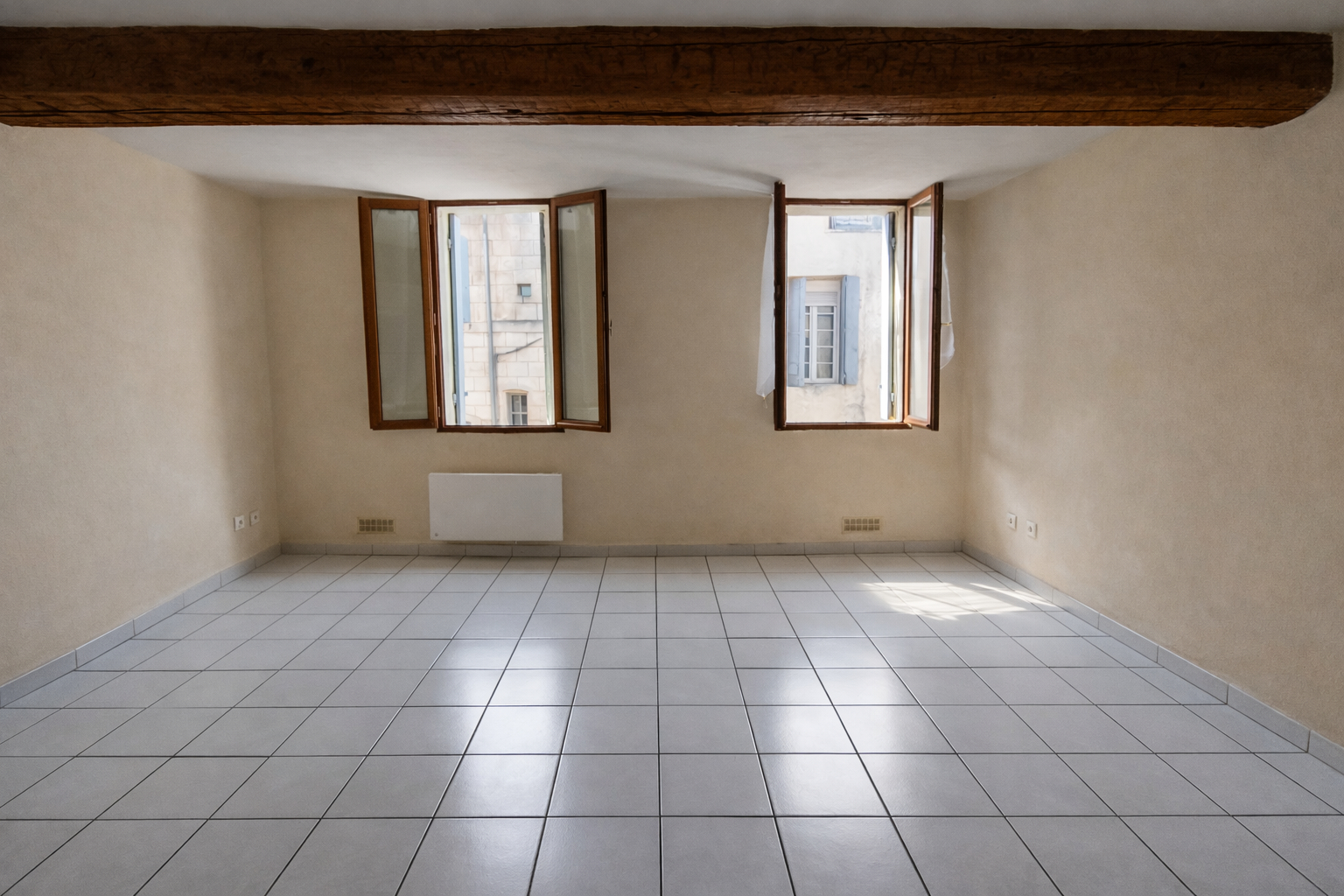 Présence de poutres apparentes.